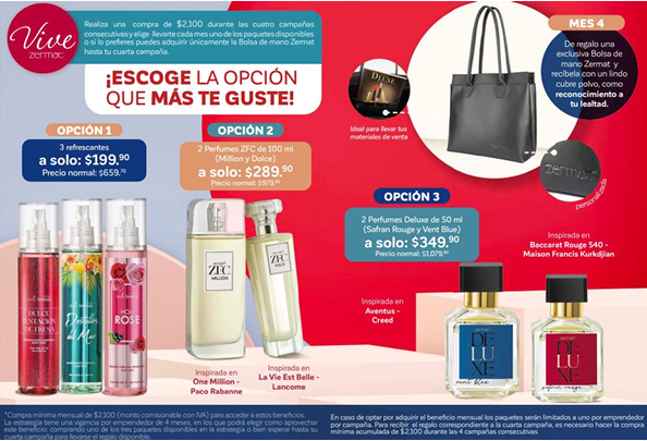 En Zermat tenemos grandes beneficios, entre ellos el programa Vive Zermat, en donde mes a mes durante tus 3 primeros meses podrás obtener un paquete de productos a precio espectacular y al 4to mes de ingreso recibir un regalo increíble, reconociendo de esta forma tu actividad en Zermat.